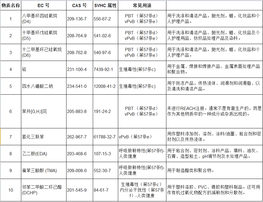 REACH法規(guī)新增10項(xiàng)SVHC 現(xiàn)共191項(xiàng)