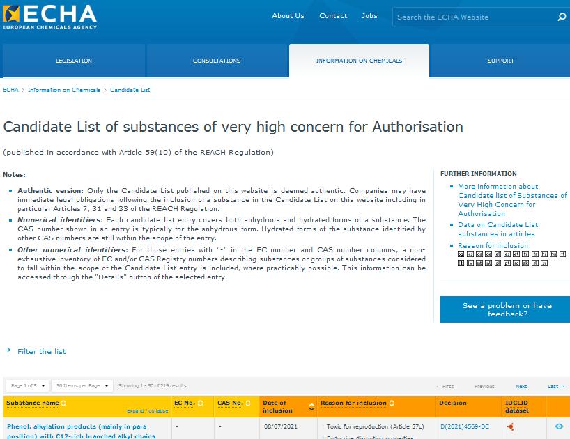 | 4,4'-(1-甲基亞丙基)雙酚;(雙酚B)4,4'-(1-methylpropylidene)bisphenol; (bisphenol B) | 77-40-7 | 人體健康-內分泌干擾屬性環境-同等水平危害屬性 (Article 57(f) | 用于制造酚醛樹脂和碳酸樹脂、食品罐頭涂層等。 |