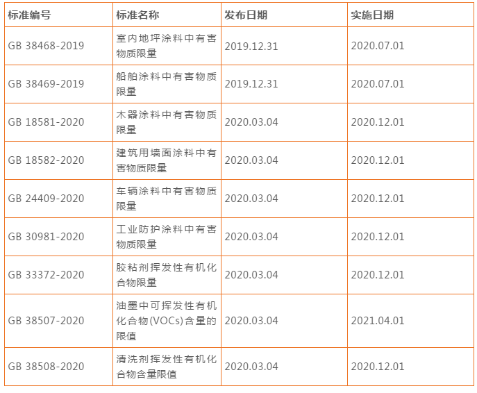國家標準化管理委員會發布9項揮發性有機物(VOCs)標準